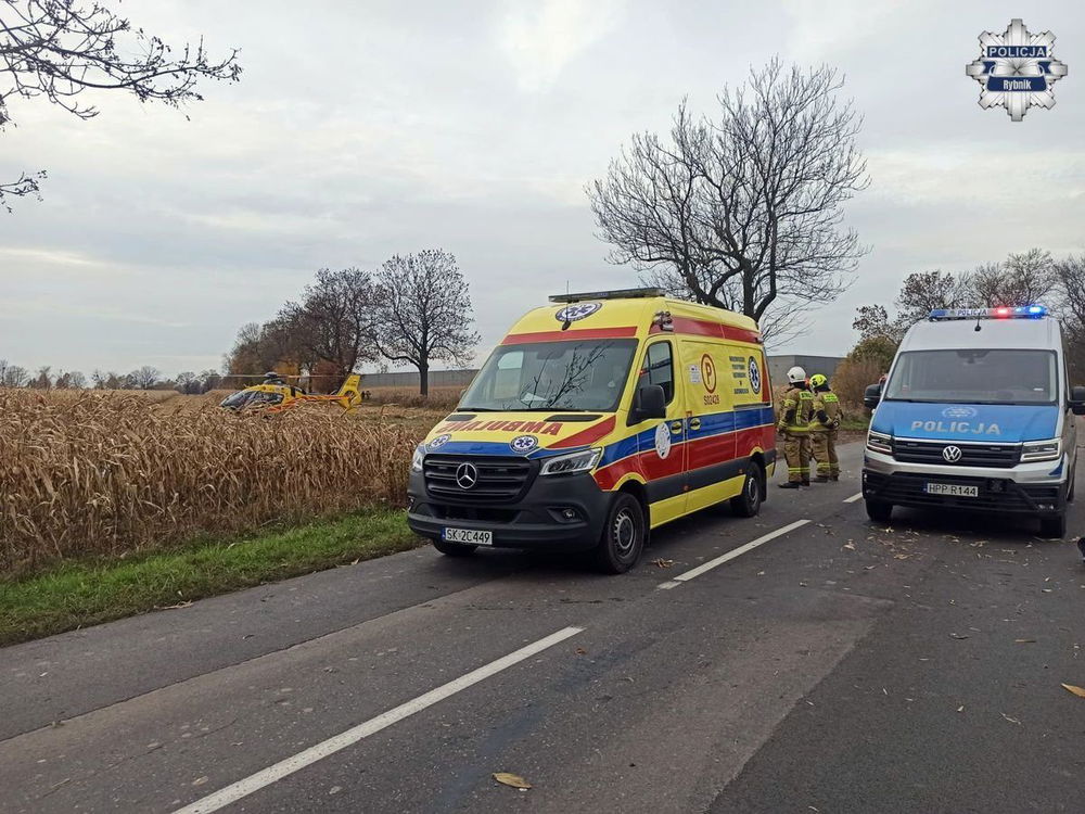 Na miejsce przybyły służby ratunkowe oraz śmigłowiec Lotniczego Pogotowia Ratunkowego. Pomimo reanimacji obrażenia motocyklisty okazały się śmiertelne. Ofiarą jest 49 letni mieszkaniec powiatu rybnickiego. Kierujący samochodem był trzeźwy.