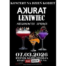 | Koncert na Dzień Kobietdodano 2025-12-12 19:14:57 Z okazji Dnia Kobiet zapraszamy na wyjątkowy koncert pełen energii i dobrych emocji! Na jednej scenie wystąpią Akurat, Leniwiec oraz Niesamowita Sprawa - zespoły, które gwarantują świetną zabawę, i niezapomnianą atmosferę. To idealny sposób, by świętować ten dzień przy dobrej muzyce i w świetnym towarzystwie. Bilety do nabycia na: KupBilecik.plAKURAT artyści: Piotr Wróbel, Wojciech Żółty, Eugeniusz Kubat, Michał Sosna, Mikołaj StrachuraAkurat to polski zespół muzyczny założony w 1994 roku w Bielsku-Białej. Graną przez zespół muzykę trudno zaliczyć do jednego, konkretnego nurtu muzycznego. Zawiera ona w sobie elementy rocka, ska, reggae, punk rocka, pop oraz funk rocka. Bilety do nabycia na: KupBilecik.pl |